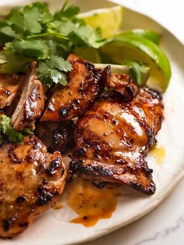 Połóż kurczaka na talerzach, polej sosem (nie potrzeba dużo, kurczak ma aromat , a sos jest mocny). Udekoruj szalotką i chili, jeśli używasz. Podawaj z ryżem.
